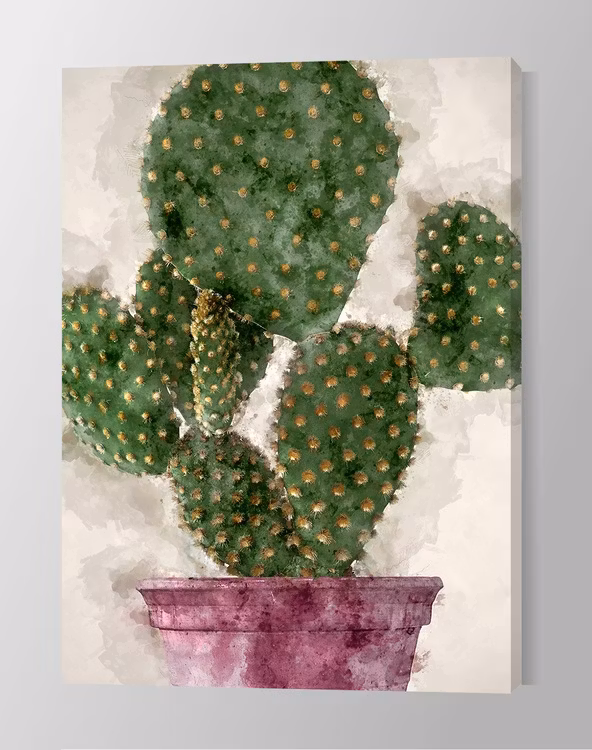 Beautiful Cactus painting. The canvas print is giclée printed and handcrafted in Sweden. Excellent depth of colour and longevity. Very high quality. The canvas print is stretched around pine wooden bars 1.6 in (4 cm) deep frame, printed around the edges of the frame. Arrives ready to hang.