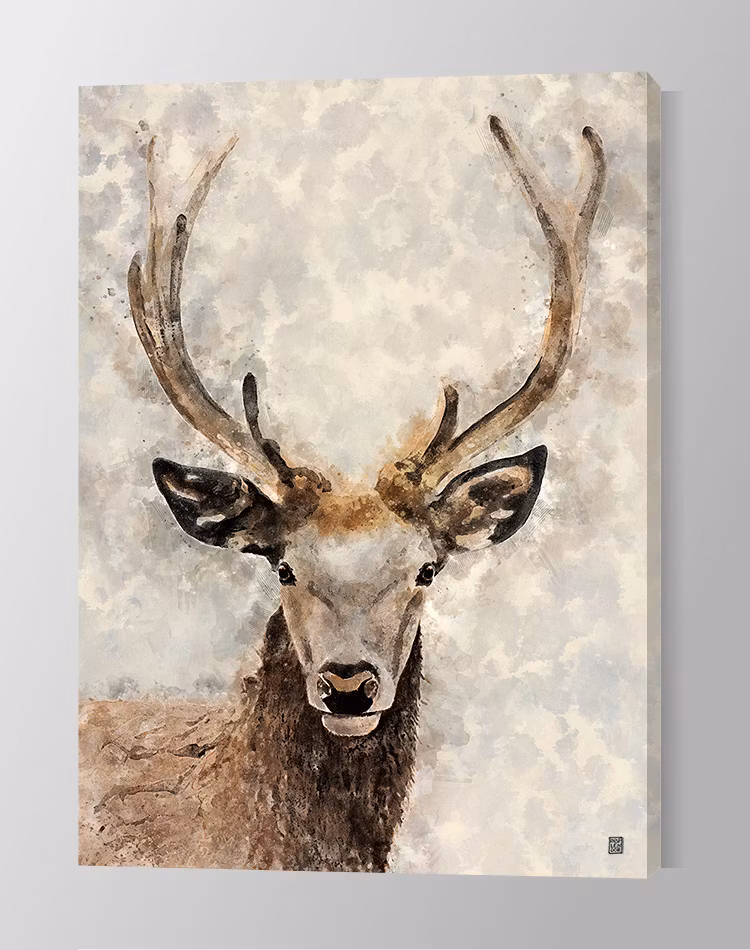 Deer watercolour painting by Insplendor. Handmade Canvas Print of highest quality – Giclée printed and stretched around wooden bars 1.6 in (4 cm) deep frame.