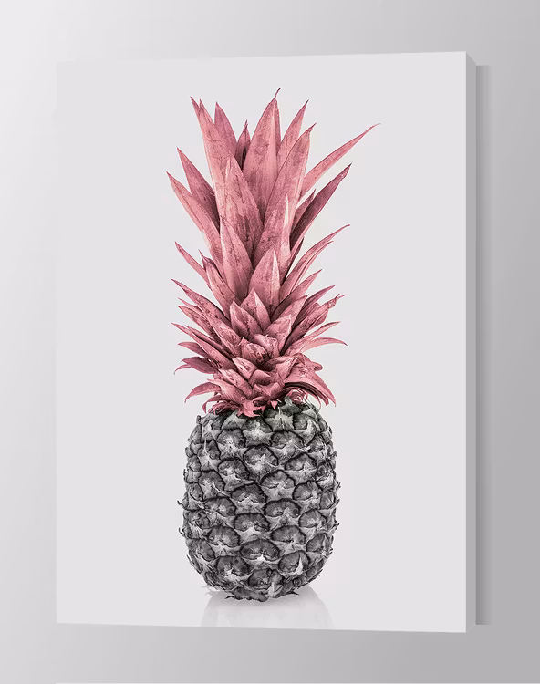 Beautiful Pink Pineapple. The Canvas print is giclée printed and handcrafted in Sweden. Excellent depth of colour and longevity. Very high quality. The canvas print is stretched around pine wooden bars 1.6 in (4 cm) deep frame, printed around the edges of the frame. Arrives ready to hang.