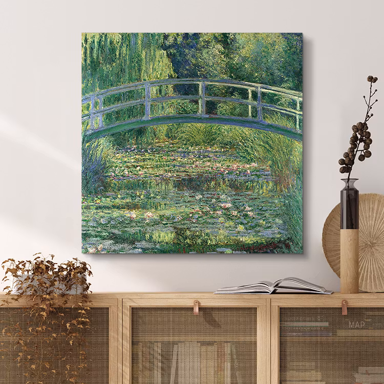 Giclée canvas are the most accurate art reproductions in the world. Beautiful reproduction of The Water Lily Pond by Claude Monet. The canvas print is Giclée printed and handcrafted in Sweden. Museum quality. The canvas is stretched around pine wooden bars of highest quality 1.6 in (4 cm) deep stretcher frame, printed around the edges of the frame. Arrives ready to hang.