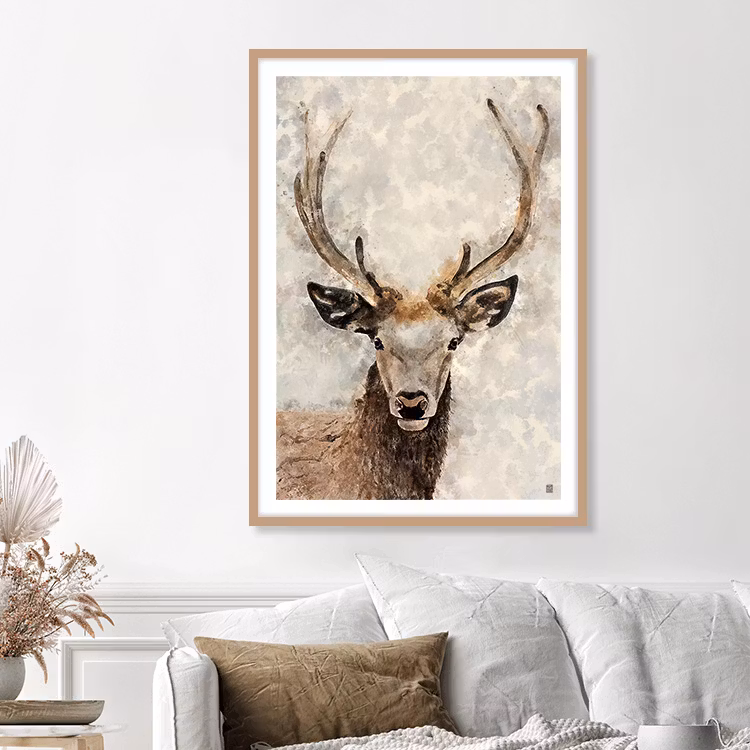 Deer in the fog Art Print