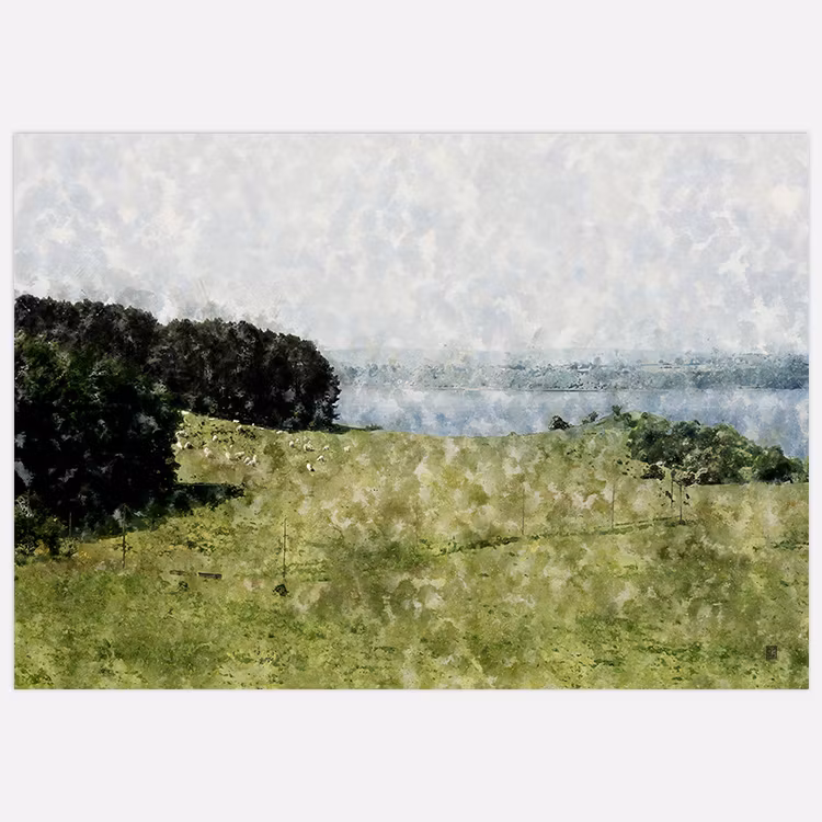 Motif: Painted Landscape. Nature. Green, blue, gray.