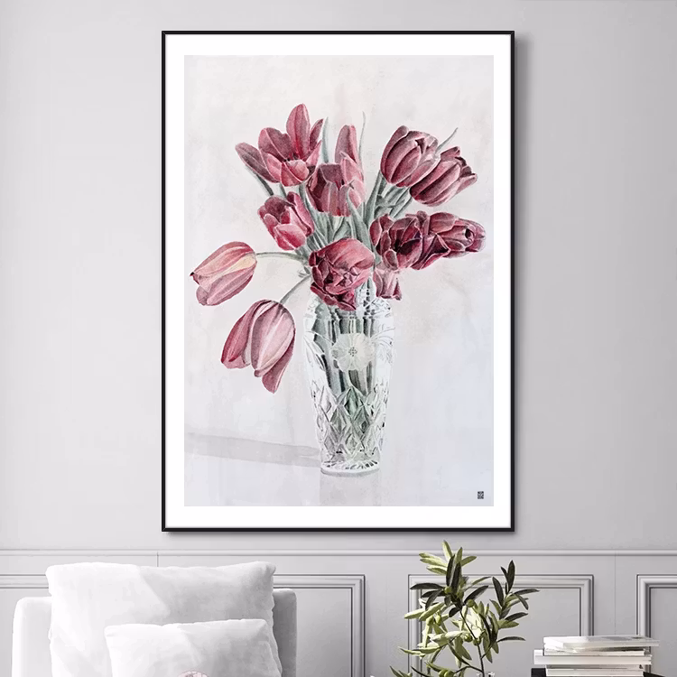 Tulips in vase is created and printed by Insplendor Studio. The painting is an art print with Giclée Fine Art Print technique - Luxury Poster of high quality. E
