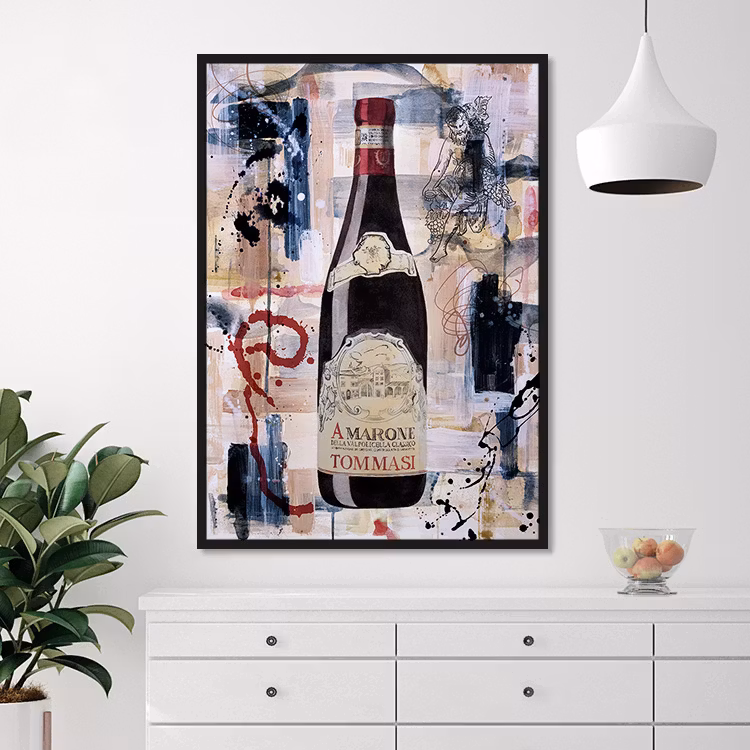 Motif: Wine Artwork. Cuisine. Black, beige, red.
