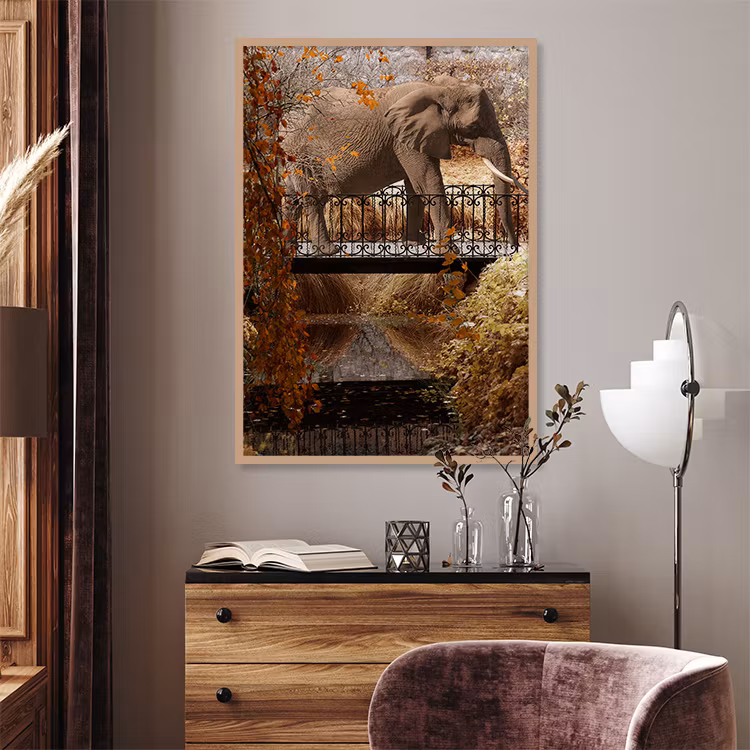 Motif: Elephant Park. Nature, Animal, Artwork, yellow, beige and brown.